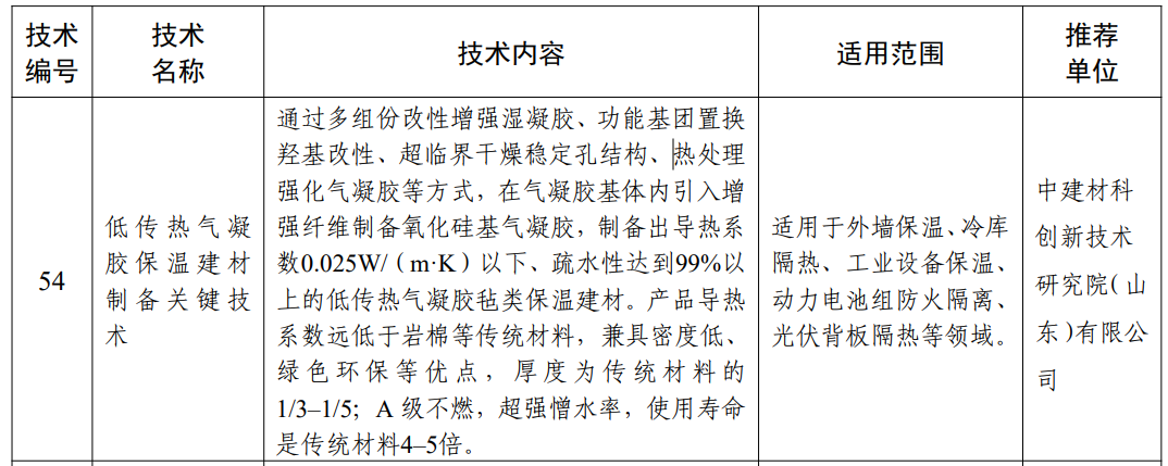 低传热气凝胶保温建材制备关键技术,入选《2025年山东省绿色低碳技术成果目录》
