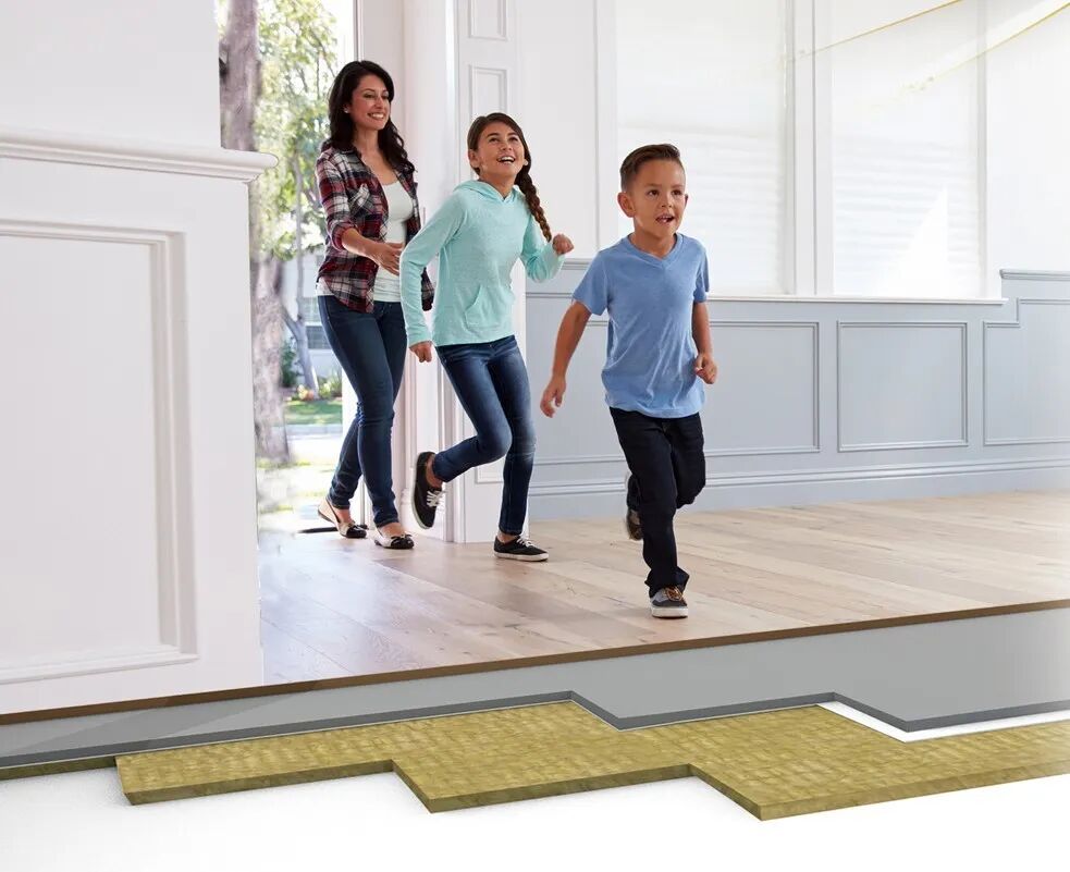- 楼板应用:在楼板中使用洛科威Floorrock无机不燃绝热隔声板,可以在提升居室防火、保温性能的同时,显著提高声学舒适度。