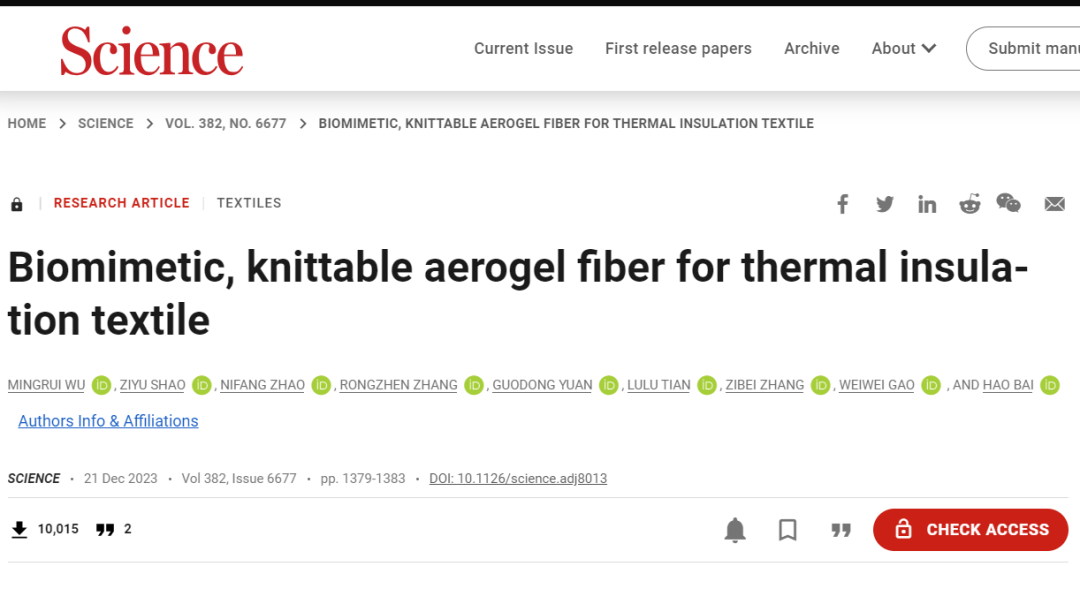 最牛青春!关于那个在《科学》发表“仿生可编织封装气凝胶纤维”的浙大博士